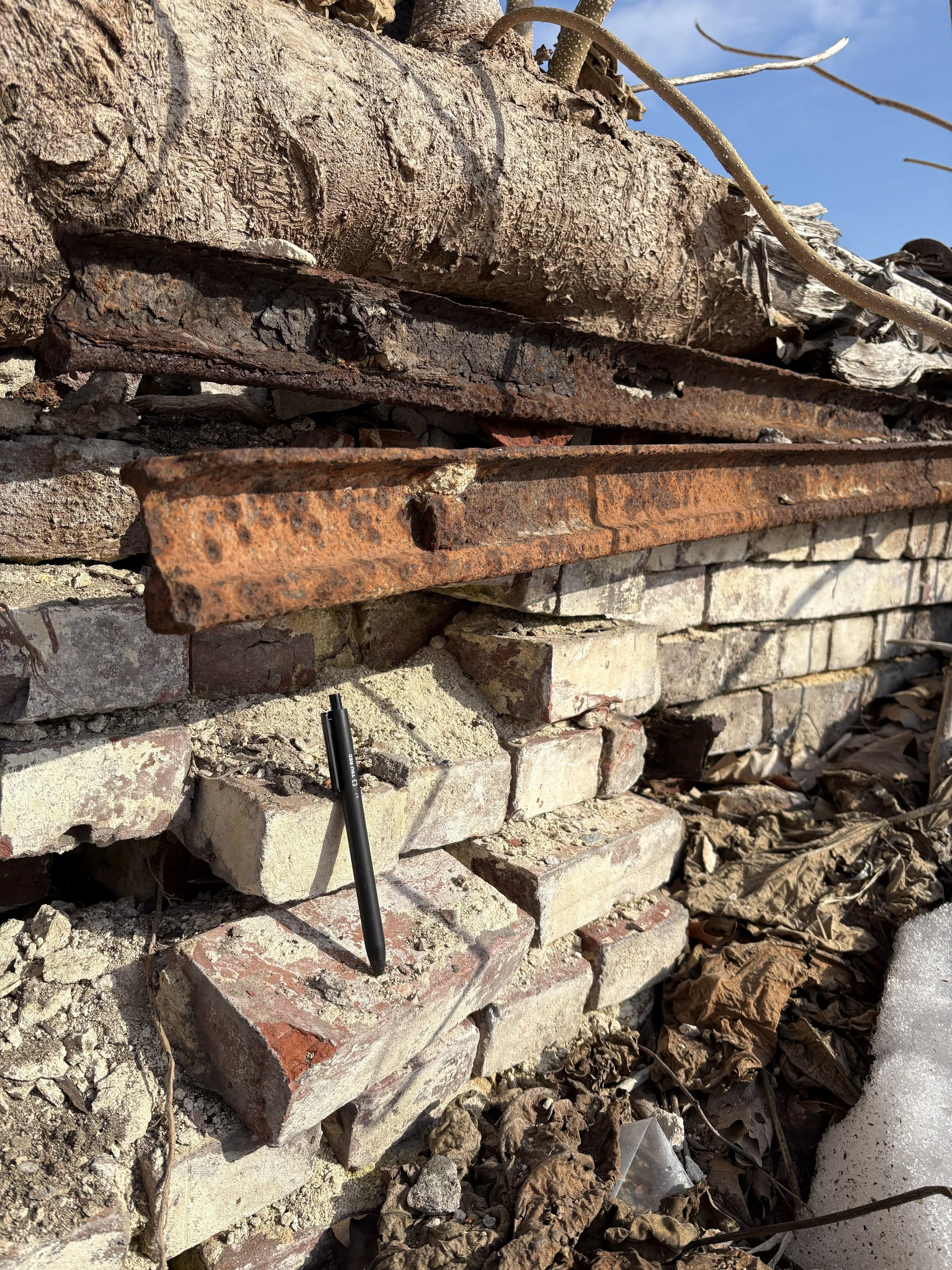 We were looking for buried utilities associated with the old structure ahead of the drilling work. Some remaining building foundations looked remarkably like bedrock outcrops. Naturally, I got my pen out for scale and documented the “Camden Formation”.