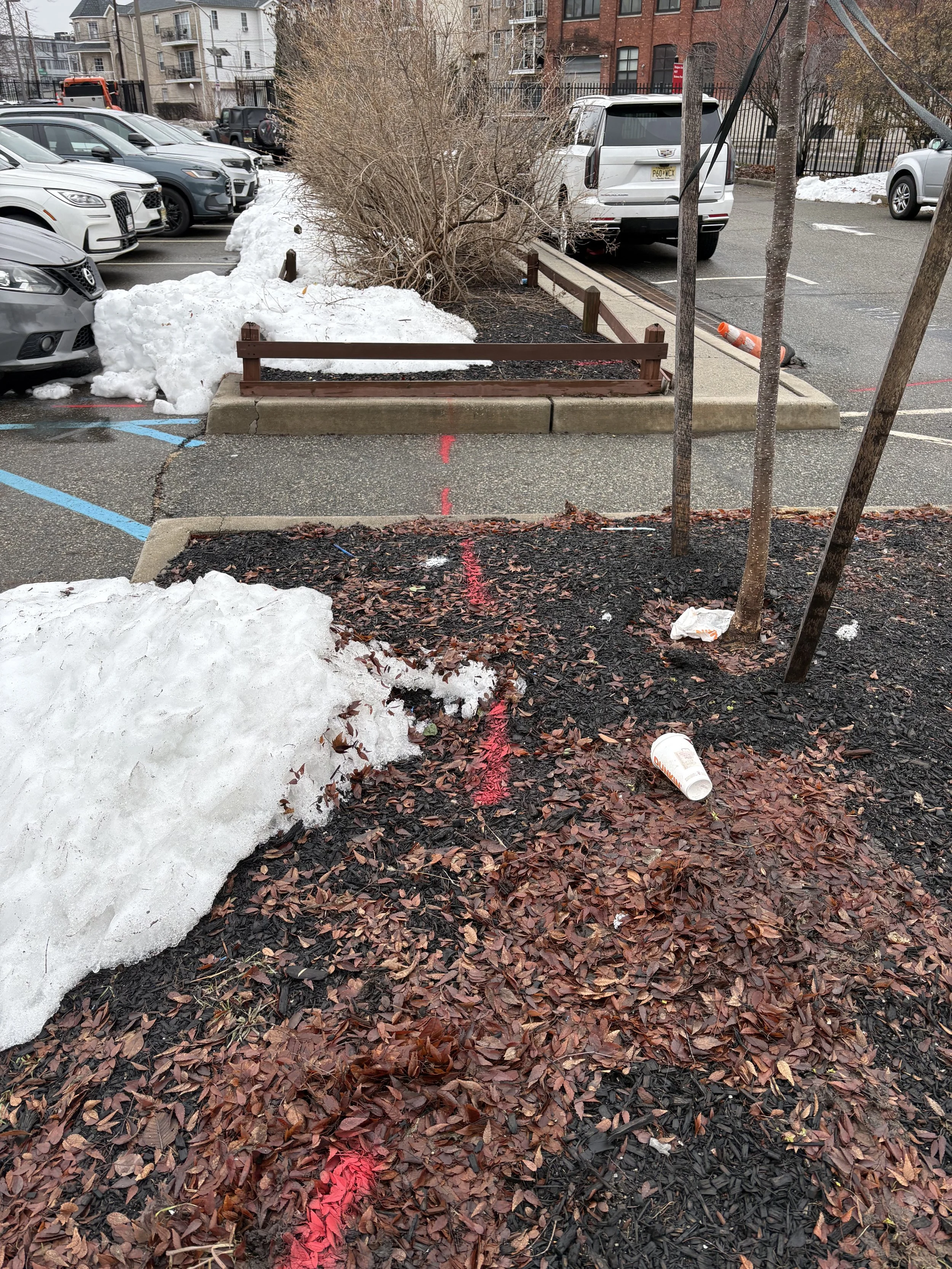 Newark, NJ: By now, you’ve probably spotted the white dot in the mulch near the curb. No surprises when I said, “let’s move it a bit.” The client was happy to dig elsewhere. Bonus: this site came with a nice view of NYC from the drone.