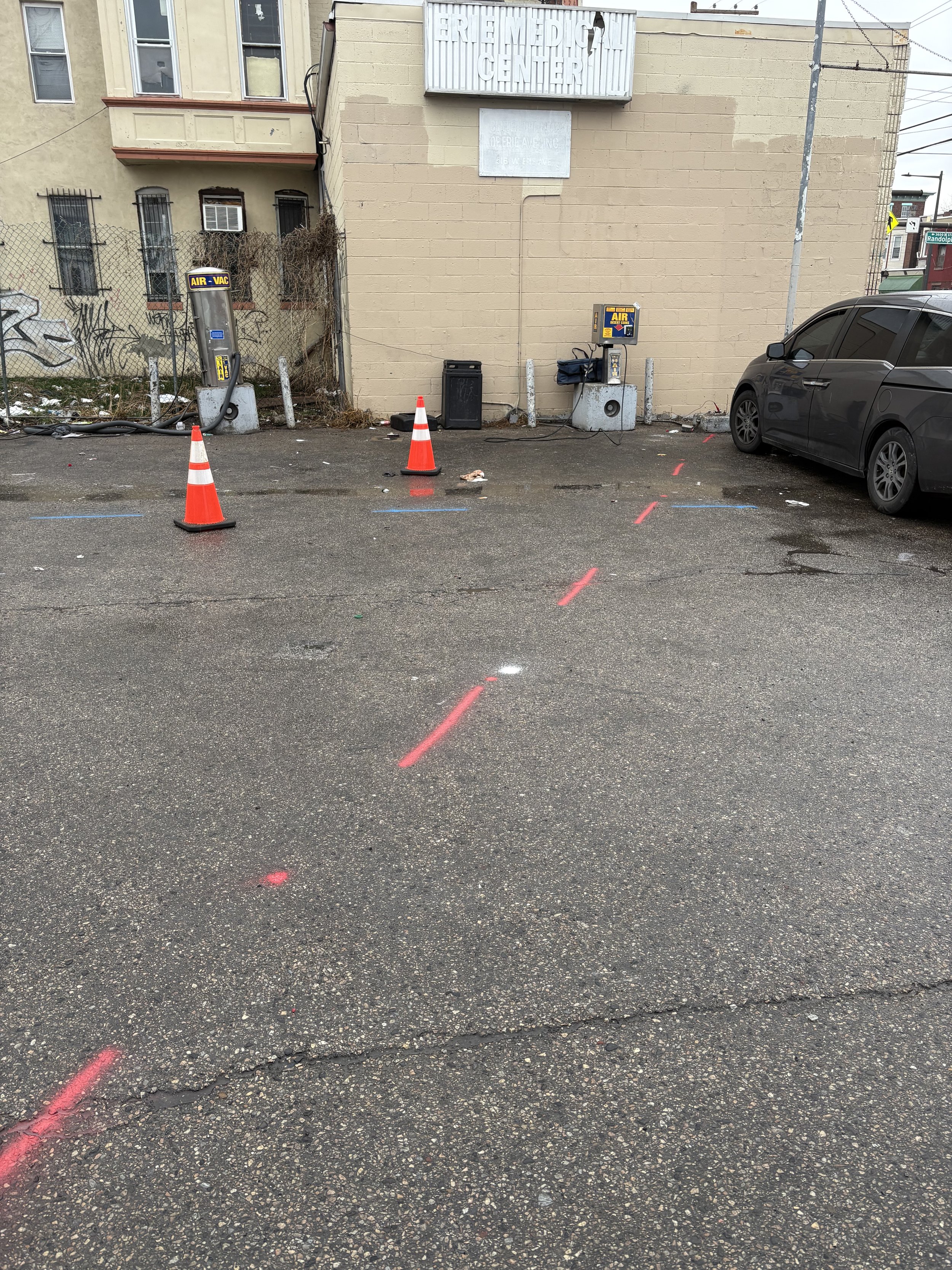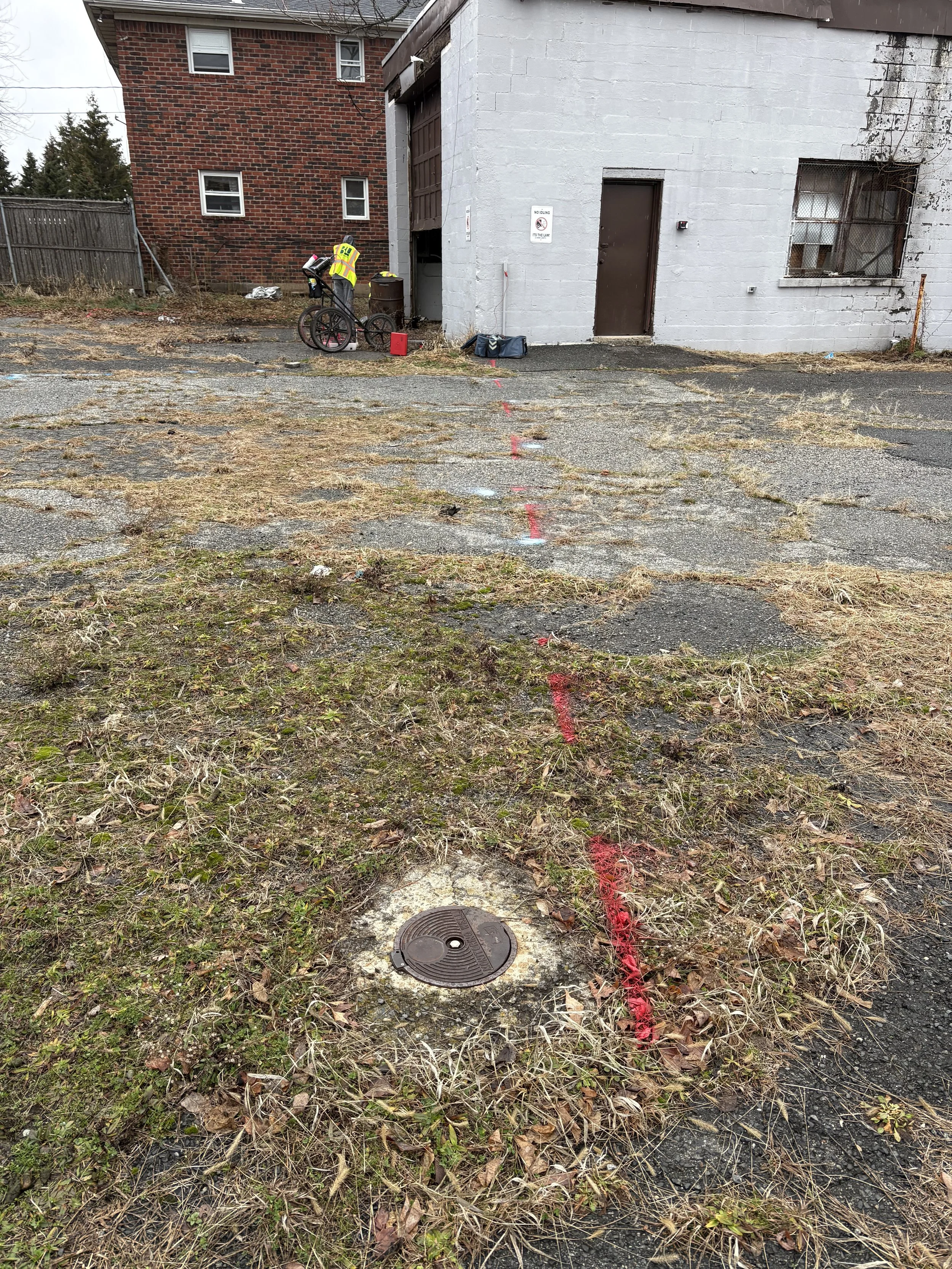Lodi, NJ: The white dots in the center mark where the client wanted to drill. Nope! Way too close to an electric line I found (ZAP). In the foreground, there’s an existing monitoring well. Was it there before the line, or after? If it came after, someone either got lucky… or knew it was there and decided to get a little too close for comfort.