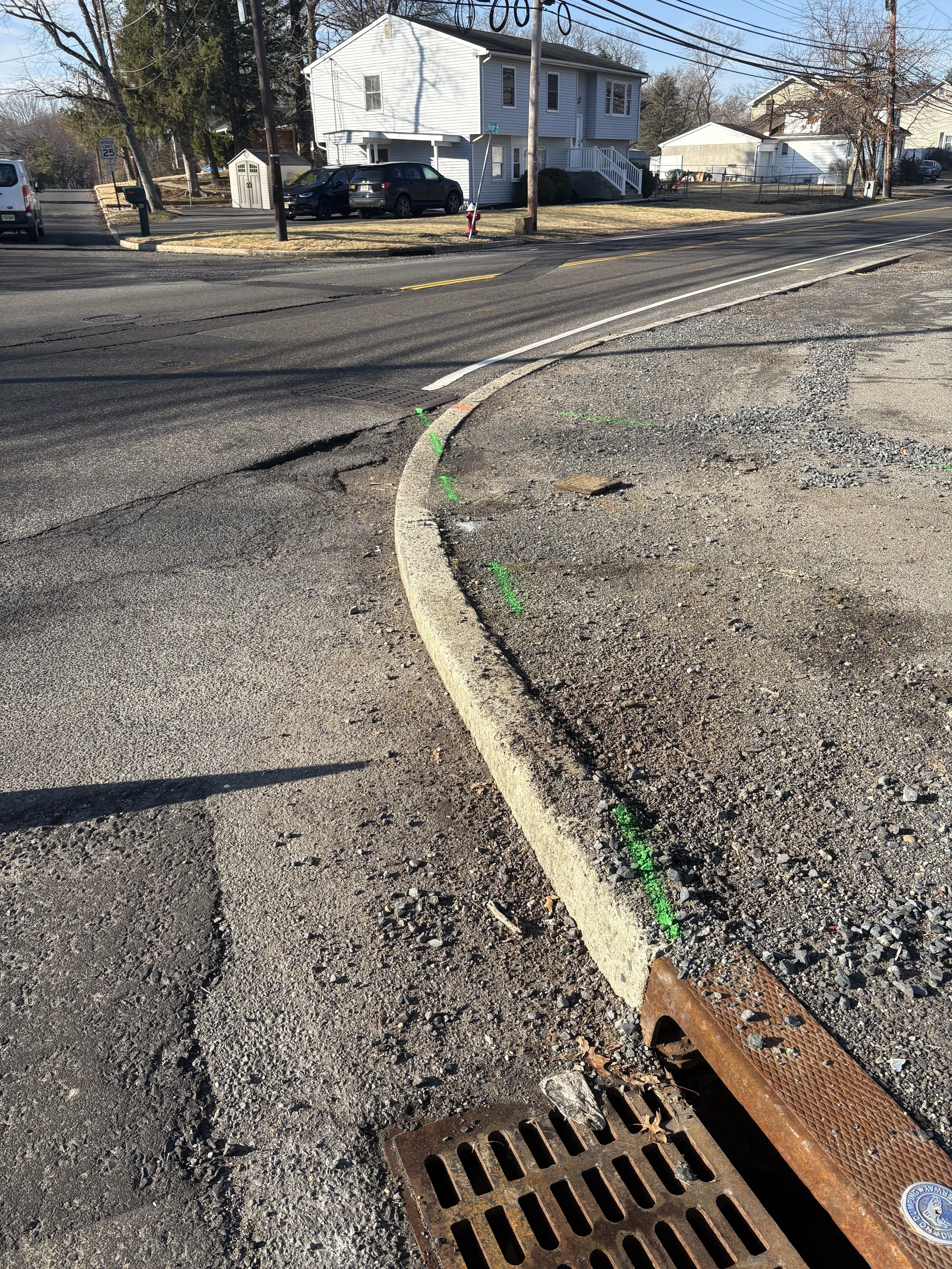Jamesburg, NJ: This one looked fine on paper until I poked my head into the storm grates and saw the sewer line running right beneath it. Not a dangerous utility to encounter, but would definitely be a headache to repair.