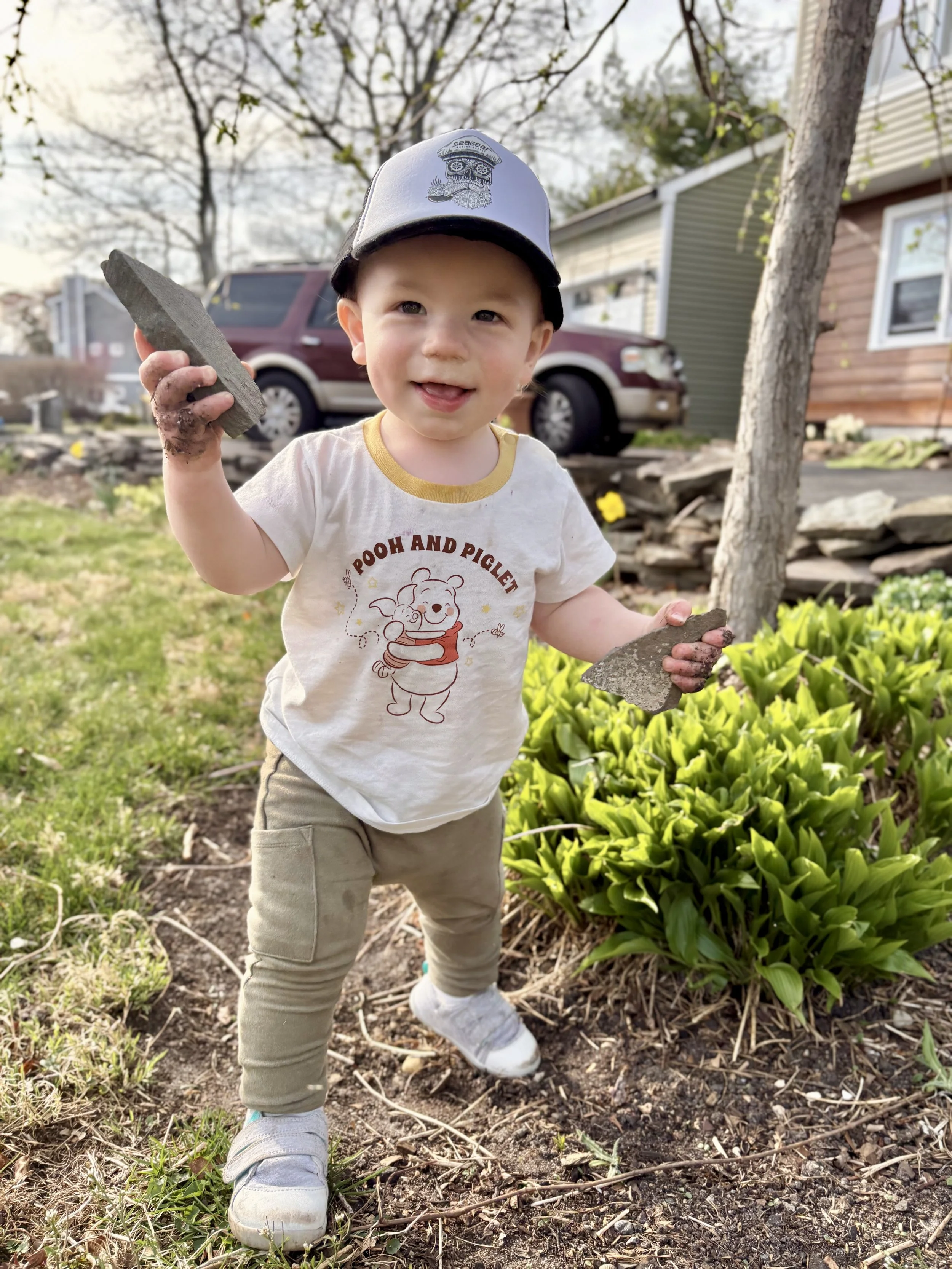 I’ll end this post on a proud geologist dad moment. I was helping my son explore our front yard and he went straight for the rocks. Atta boy.